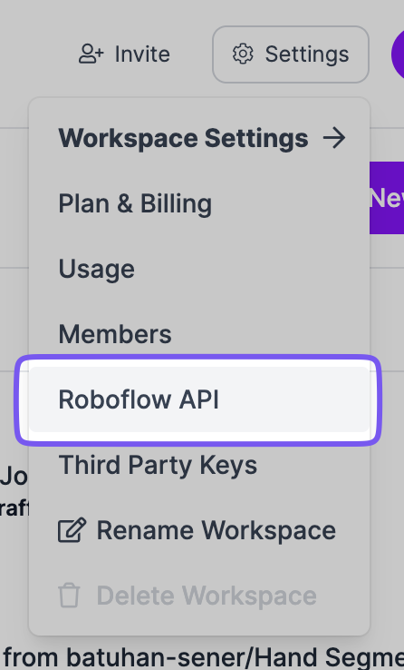 First, go to the Roboflow dashboard. Then, select the "Roboflow API" tab from the Settings dropdown.