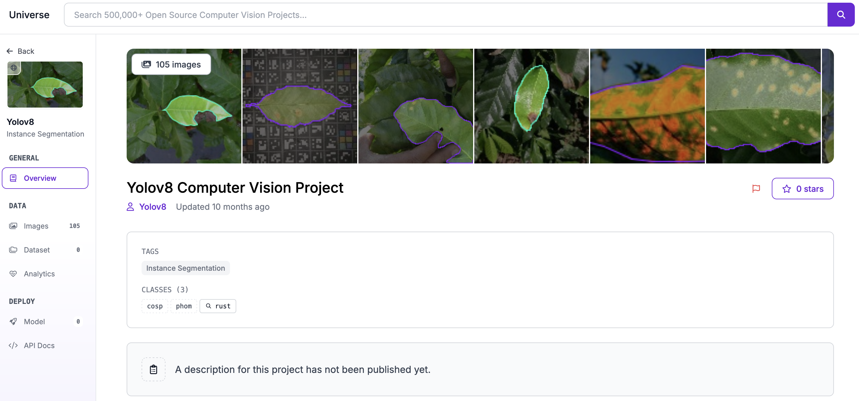 उन्नत फ़िल्टर भी हैं जिनका उपयोग आप dataset में छवियों की संख्या, प्रोजेक्ट के पास स्टार्स की संख्या, और अधिक के आधार पर अपनी खोज को और परिशोधित करने के लिए कर सकते हैं।