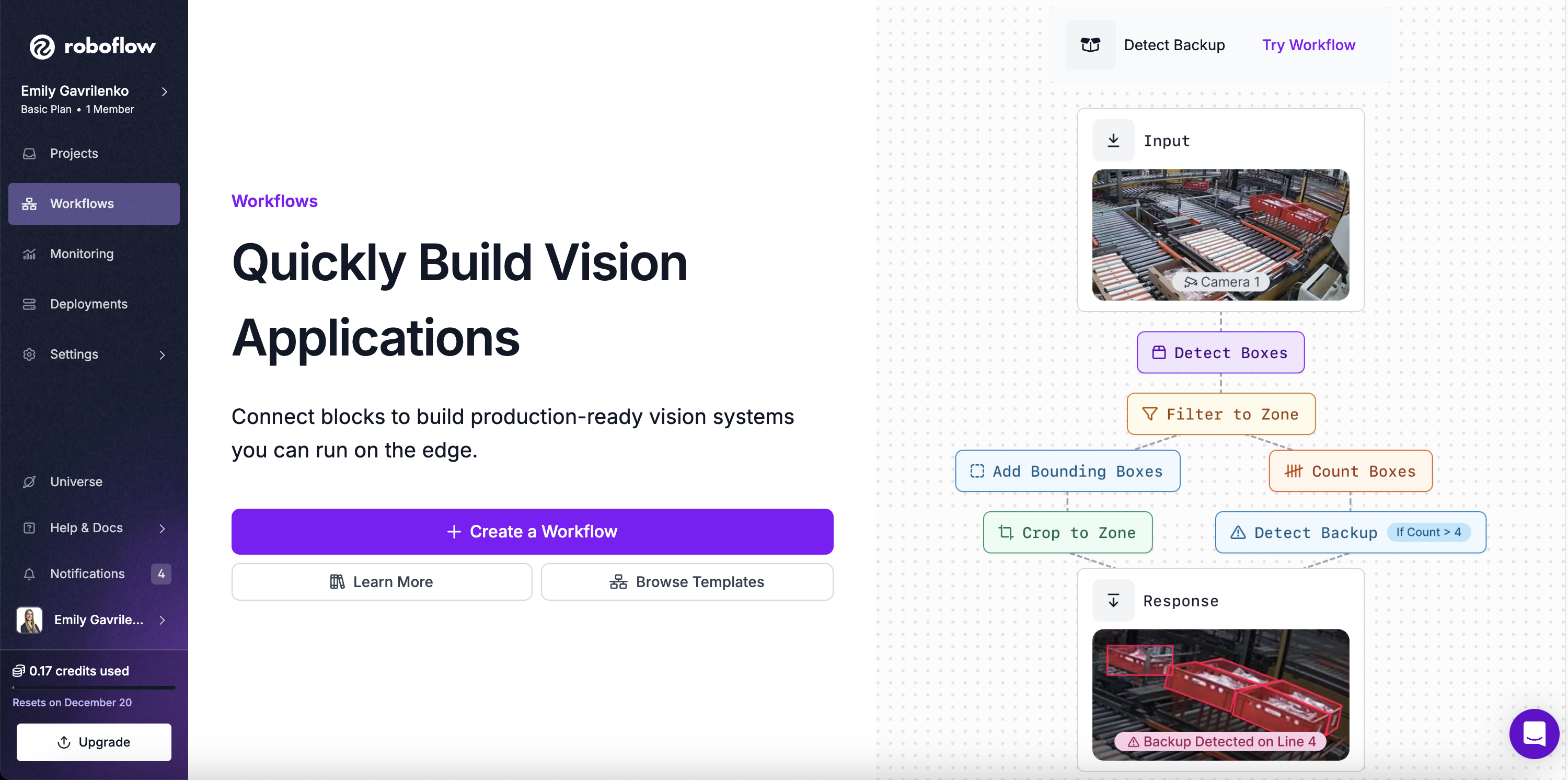 अब जब आपने एक workflow बना लिया है, तो आइए इसे एक विज़न उपयोग केस को हल करने के लिए कॉन्फ़िगर करें।