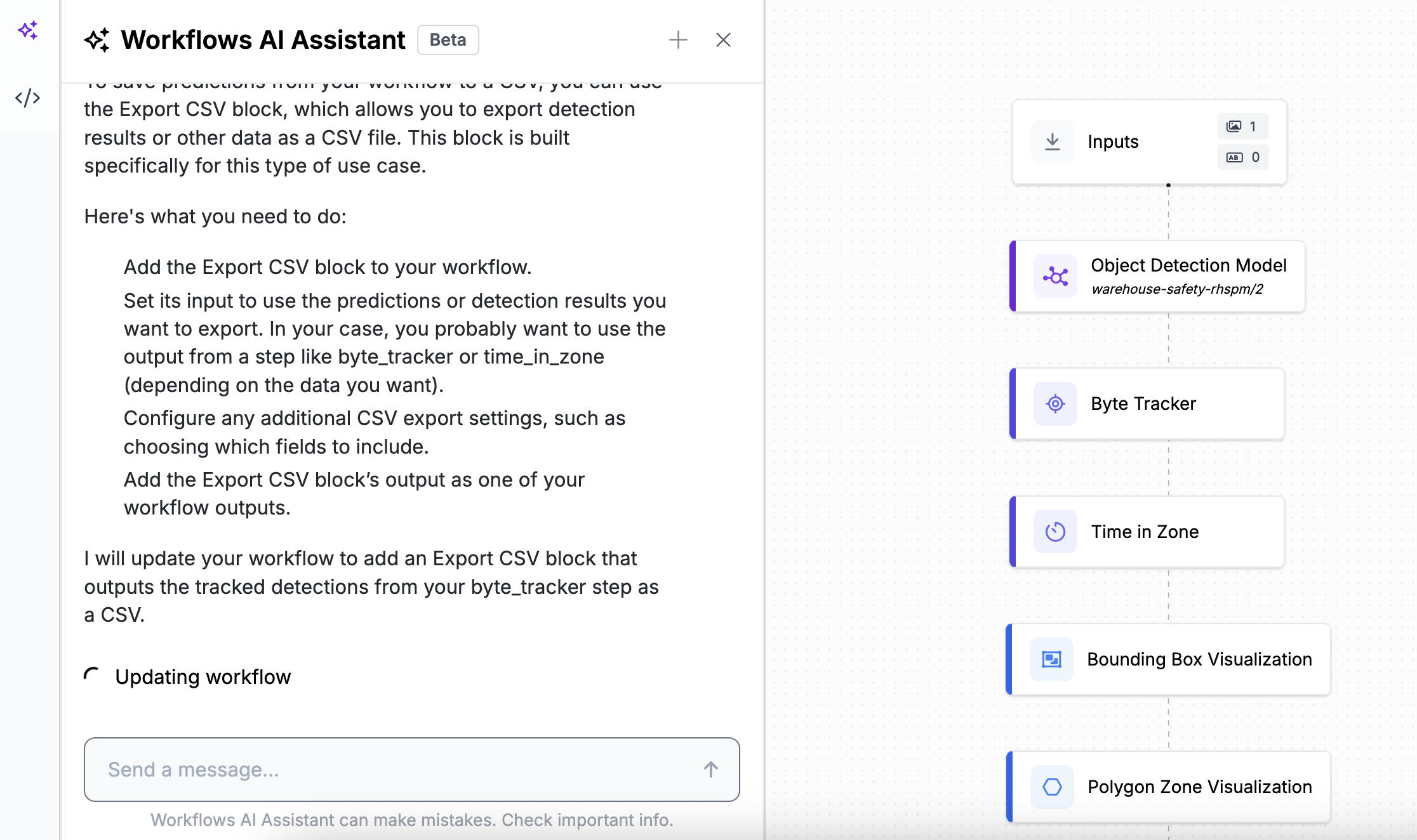 आप Workflows AI Assistant से अपने Workflow में बदलाव करने के लिए कह सकते हैं।