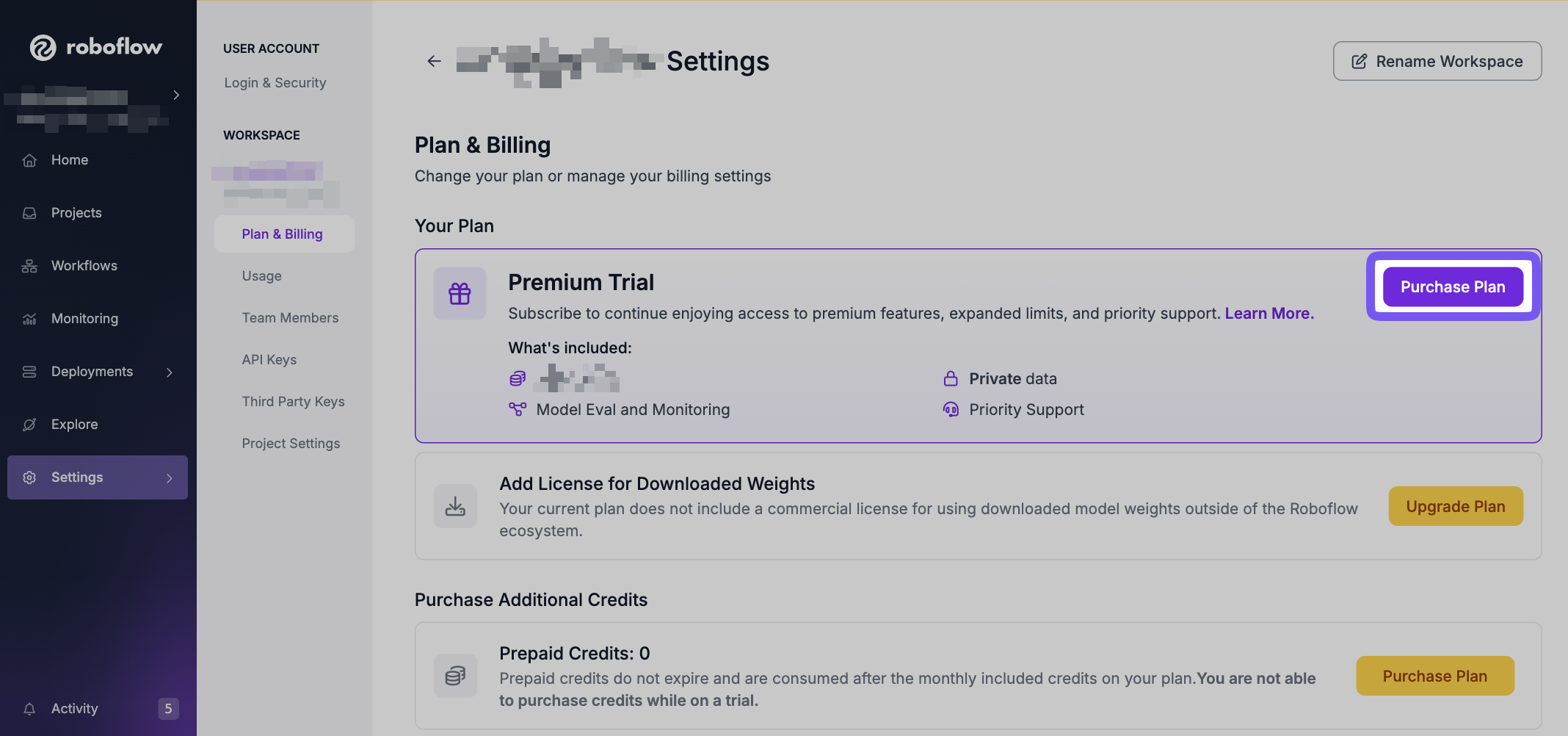 Premium Trialは、Roboflowのコンピュータビジョンプラットフォームがあなたのユースケースに適しているかどうかを評価するための、14日間の期間限定プレミアム機能トライアルです。