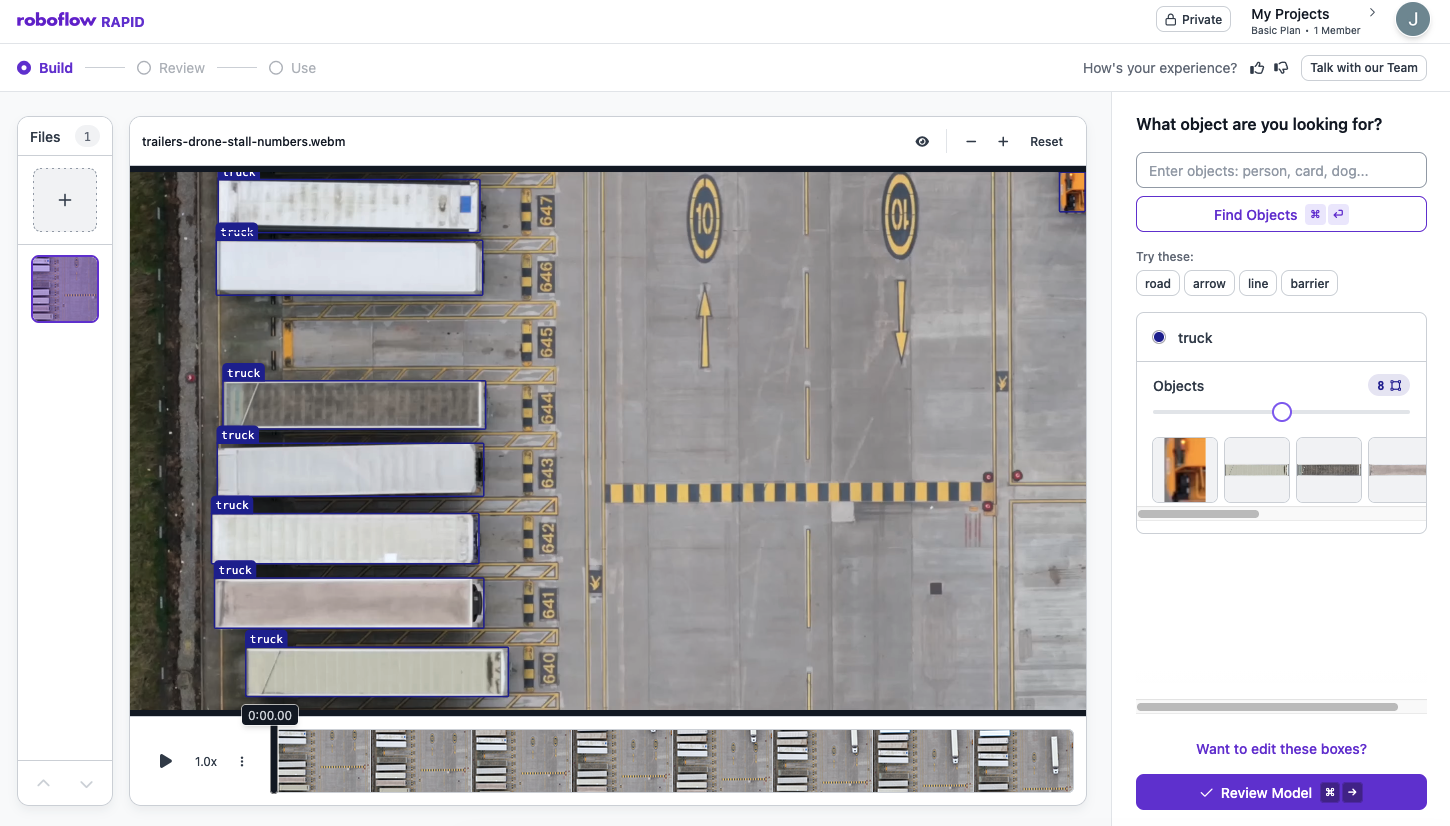 その後、動画や画像をアップロードし、テキストプロンプトでラベリングするか、識別したい物体の周りにバウンディングボックスを描いてラベル付けできます。