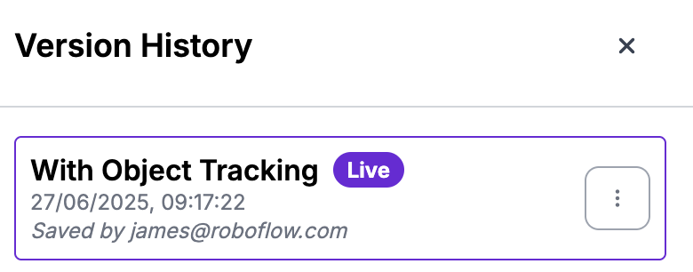 Workflowのバージョンを確認するには、Workflowエディタの右サイドバーにある時計アイコンをクリックしてください。保存されたすべての変更が表示されるパネルが開きます。
