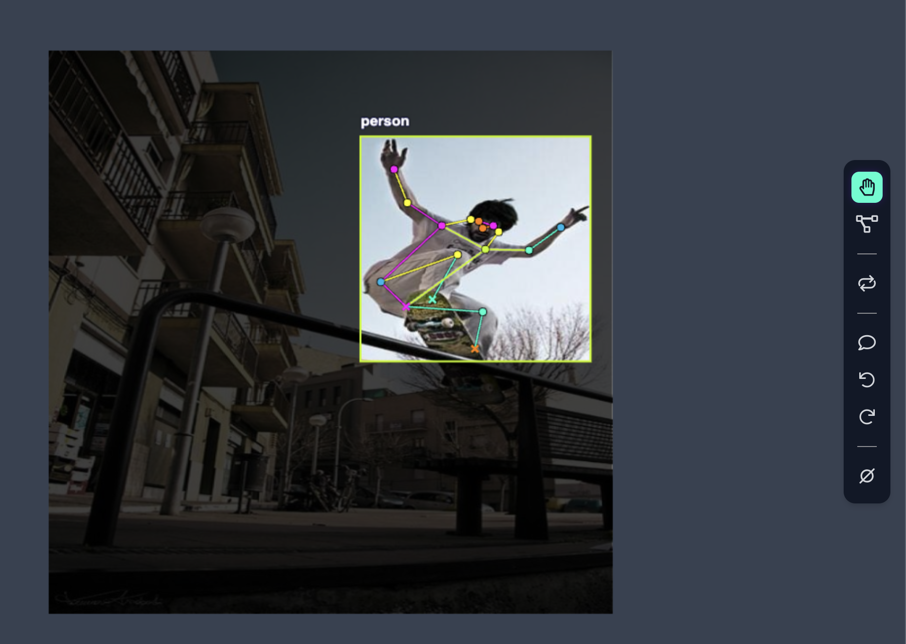 <figure><img src="https://3958014485-files.gitbook.io/~/files/v0/b/gitbook-x-prod.appspot.com/o/spaces%2F-M6S9nPJhEX9FYH6clfW%2Fuploads%2Fgit-blob-5e2c7bba9a00f0c4fedd8fffd90a4959afbf96da%2FScreenshot%202023-12-29%20at%203.52.36%E2%80%AFPM.png?alt=media" alt="" width="563"><figcaption><p>주석 도구 내 키포인트가 포함된 바운딩 박스</p></figcaption></figure>