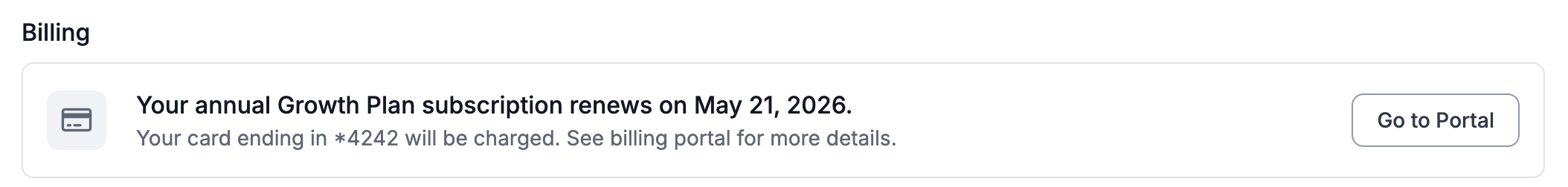 1. 결제 수단을 업데이트하려면, workspace의 [Plan & Billing 페이지로 이동한 다음](https://app.roboflow.com/the-analytics-zone/settings/plan) "Go to Portal"을 선택하세요.