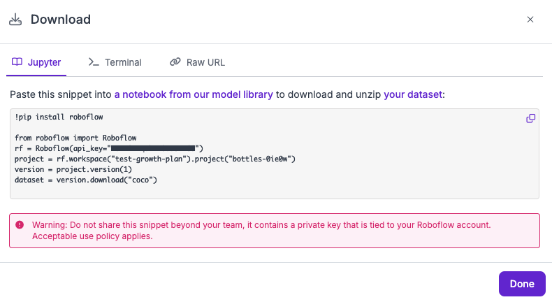 Roboflow에서 데이터셋을 다운로드하려면 먼저 [데이터셋 버전을 생성해야 합니다](https://docs.roboflow.com/roboflow/roboflow-ko/datasets/dataset-versions/create-a-dataset-version).