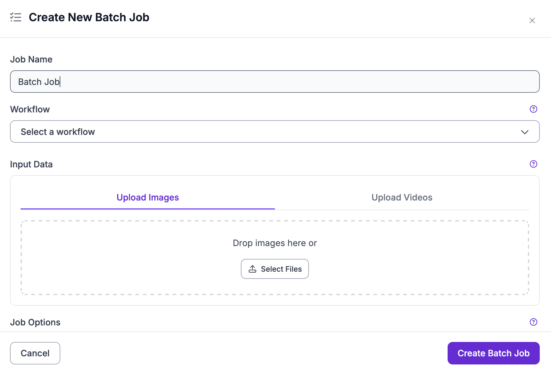 Roboflow 웹 인터페이스 또는 API(CLI를 통해)를 통해 Batch Processing 작업을 구성할 수 있습니다.