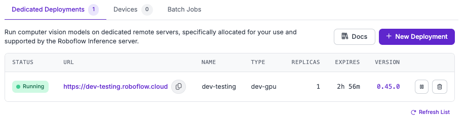 다음에도 액세스할 수 있습니다 [HTTP API를](https://inference.roboflow.com/api/) 다음 아래에 나열된 `/docs`, 예를 들어, `https://dev-testing.roboflow.cloud/docs` .